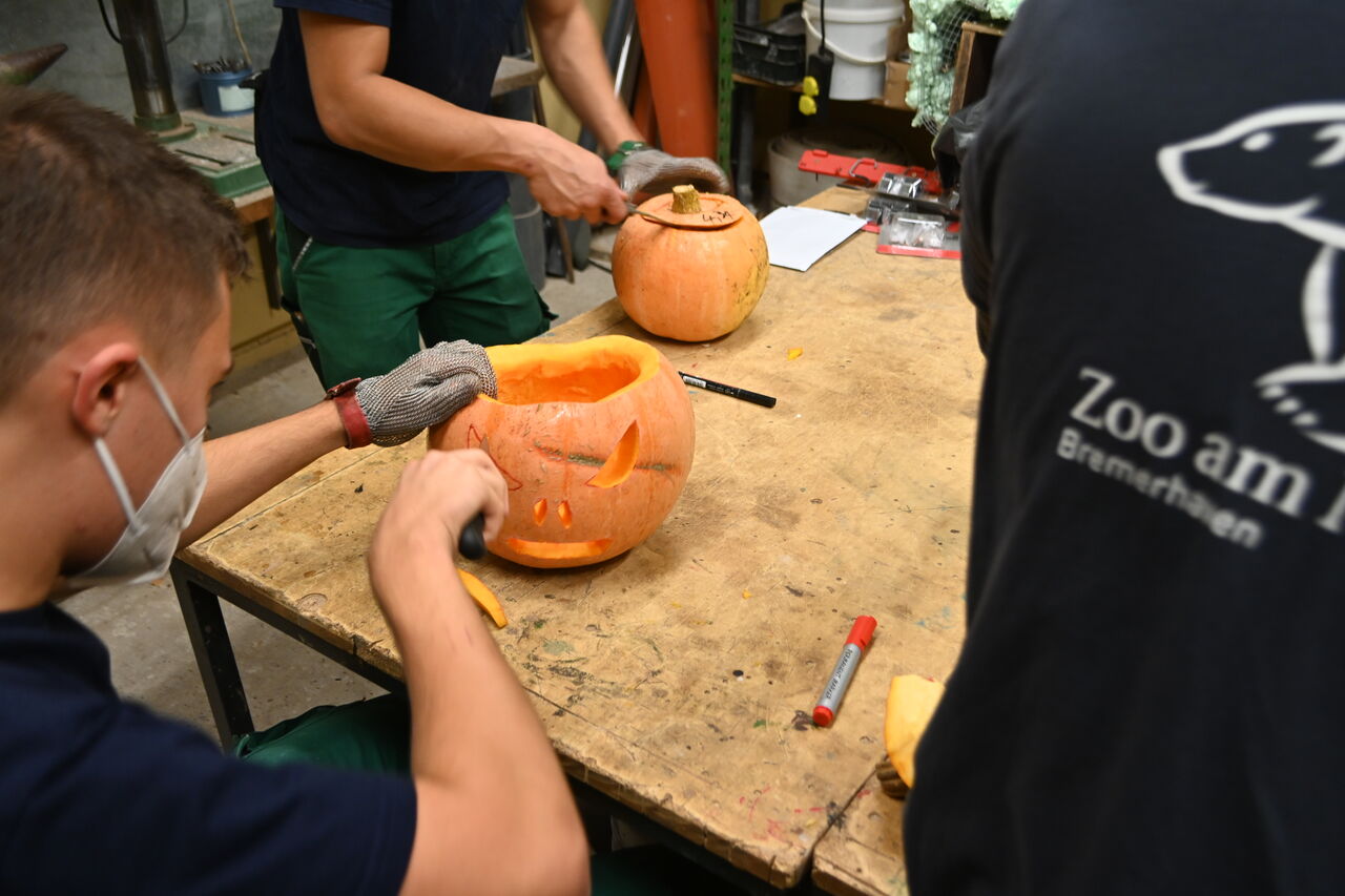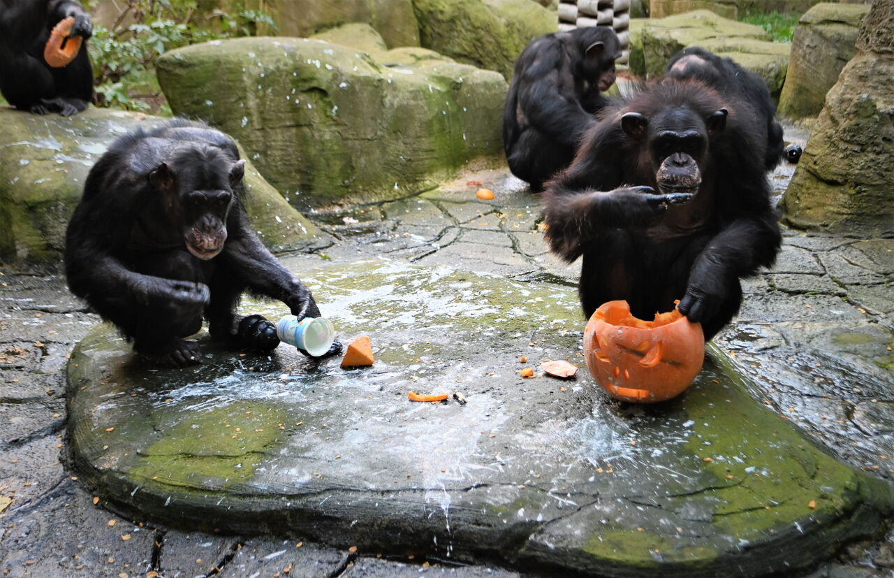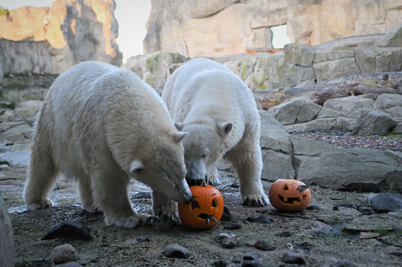 Was für eine Überraschung zu Halloween im Zoo am Meer! Die Tierpfleger:innen hatten sich einen Spaß erlaubt und mit ihren eigens für die Tiere geschnitzten Kürbisse die Eisbären und Schimpansen in Erstaunen versetzt.