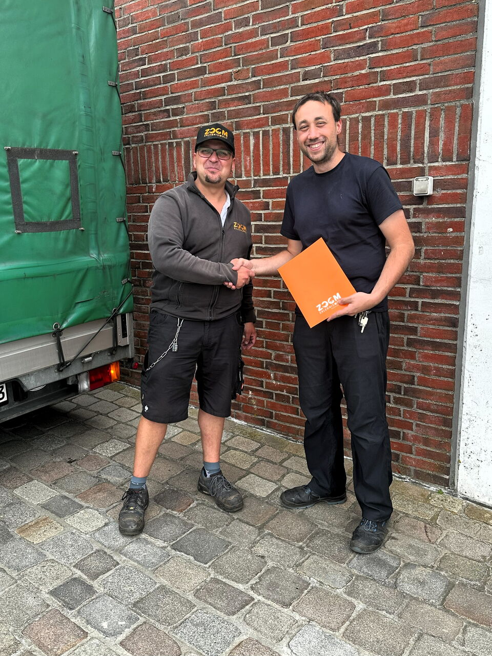 Lara wurde von Florian, einem ihrer Eisbären-Pfleger aus dem Zoo Gelsenkirchen, begleitet und offiziell an unseren Tierarzt Fabian übergeben.
