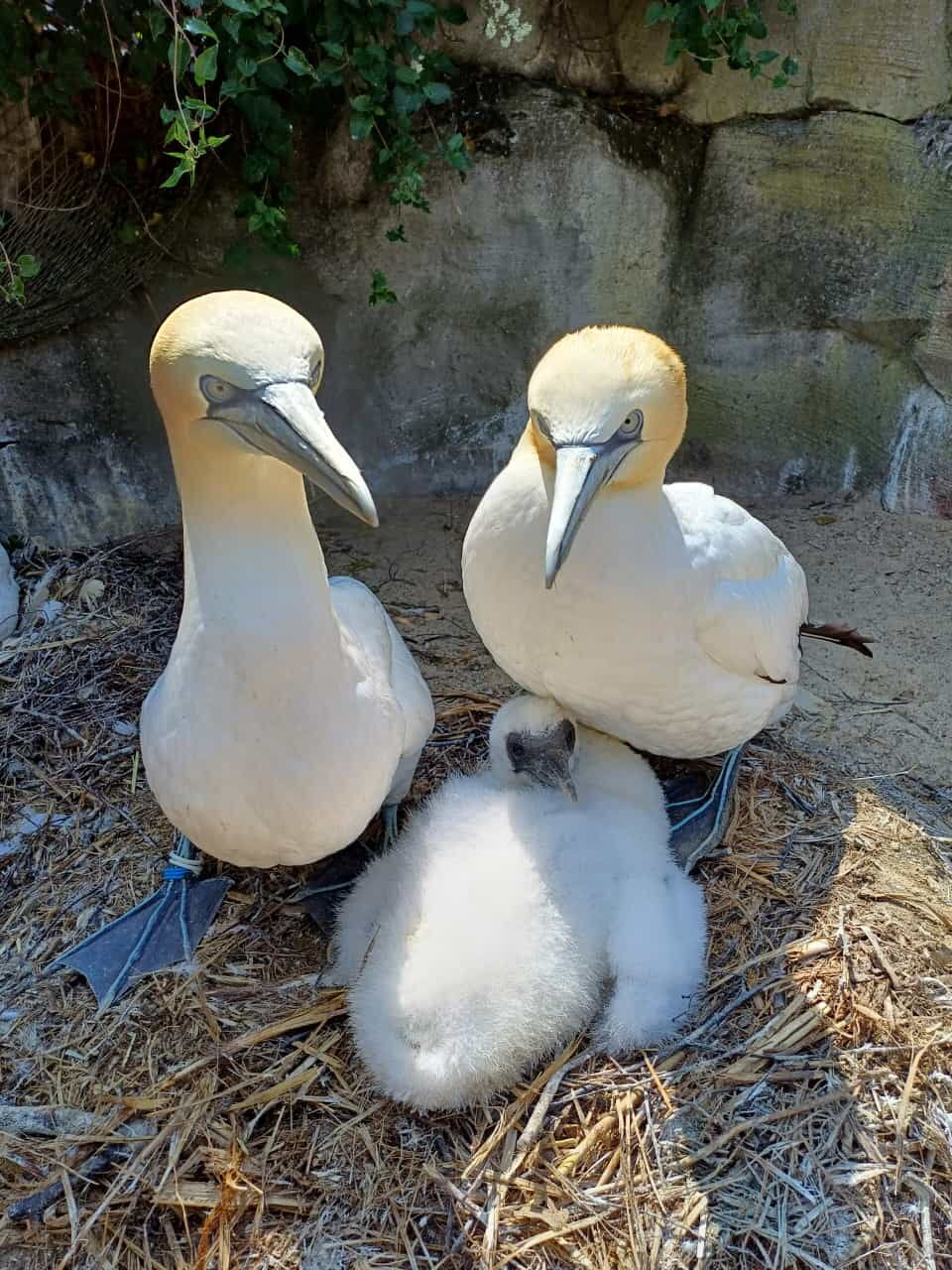 Im letzten Jahr mussten die Tiere aufgrund einer Vogelgrippeerkrankung in Quarantäne. Als sie danach wieder auf die Anlage kamen, legten sie zwar Eier, aber es schlüpften keine Küken. Umso glücklicher sind wir, dass es in diesem Jahr mit zwei Küken wieder geklappt hat.