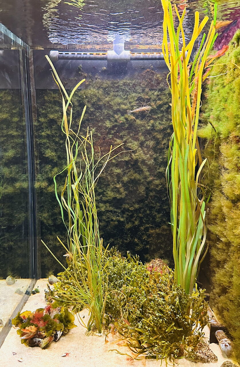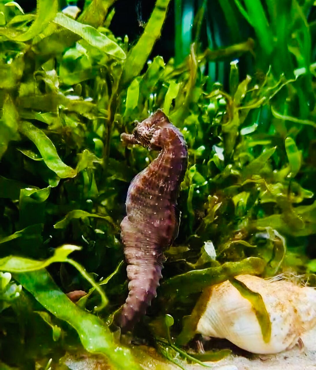 Aktuell bewohnen neun Kurzschnäuzige Seepferdchen gemeinsam mit Gemeinen Einsiedlern, Felsengarnelen, Schlangensternen und Miesmuscheln das neue Becken. Das Becken wurde speziell auf die Bedürfnisse der empfindlichen Meeresbewohner abgestimmt. Es ist dem natürlichen Habitat von Seepferdchen nachempfunden, mit Seegras und Makroalgen.