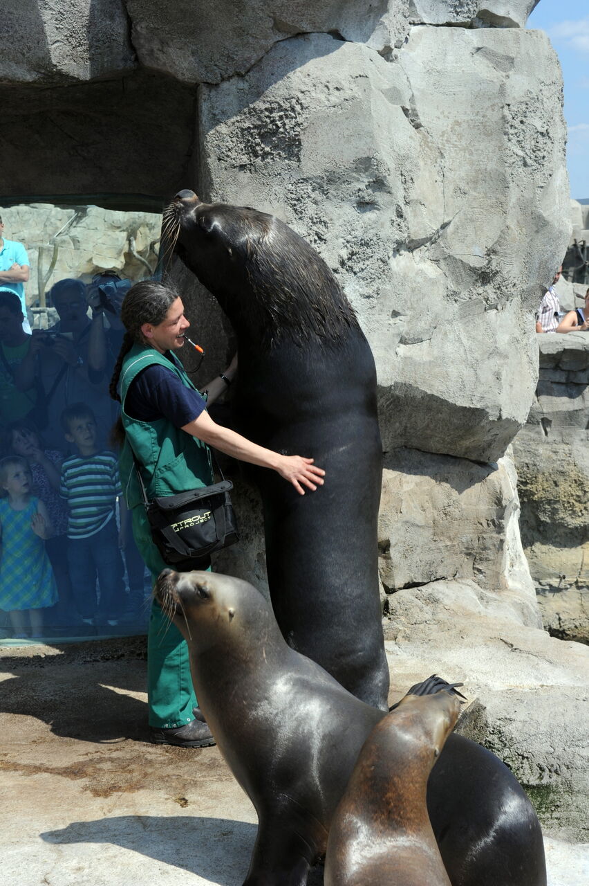 Trotz seiner stattlichen Größe war er immer ein „lieber“ Bulle und sehr engagiert beim Training mit Carmen Gürster und ihren Kolleginnen. Man darf nie vergessen, dass es sich um ein Raubtier handelte und die Friedfertigkeit nicht selbstverständlich war. Umso mehr fehlt er uns und sein leerer Platz auf der Seelöwen-Anlage schmerzt.