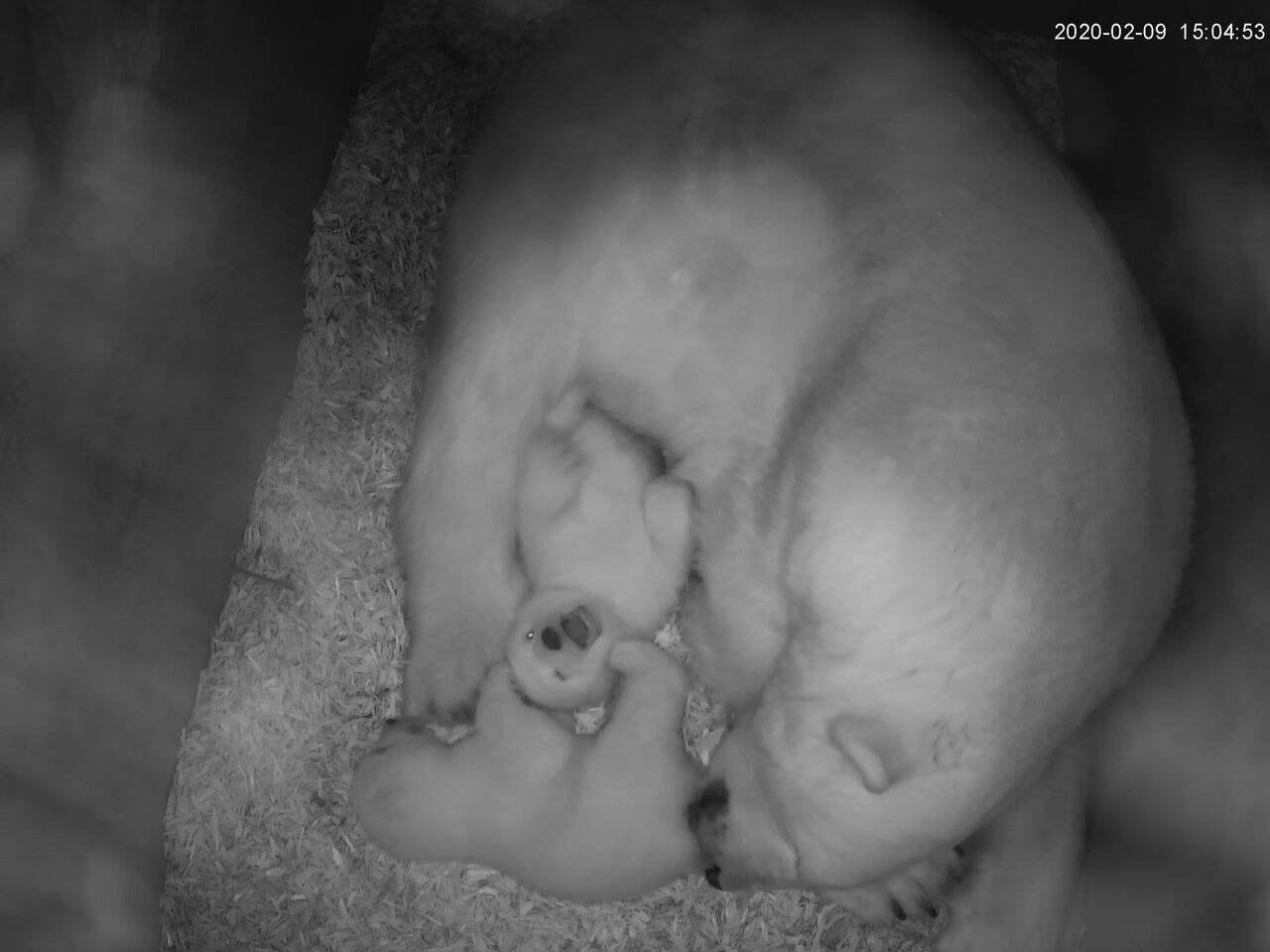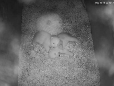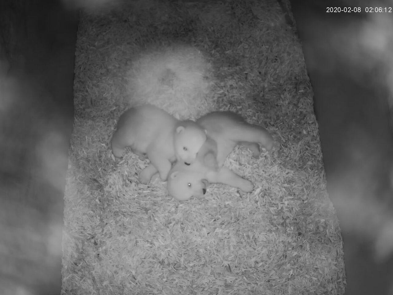Die nächste Phase bei Valeska und ihren Zwillingen ist heute eingetreten: Zum ersten Mal wurde Valeska hinter den Kulissen in den Teil des Innengeheges gelassen, in dem die Pfleger sie sehen können und sie etwas zu fressen bekommt. Gestern und vorgestern lag sie längere Zeit vor dem Schieber zu dieser Anlage, was ein Zeichen dafür ist, dass es Zeit für den nächsten Schritt war. Dieser bedeutet, dass sie nicht mehr den ganzen Tag mit den Jungtieren nur in der Wurfhöhle liegt und diese säugt. Sobald die beiden jedoch unruhig werden, läuft sie sofort wieder in die Wurfhöhle und schaut nach, ob alles in Ordnung ist. Ganz die fürsorgevolle Mutter!