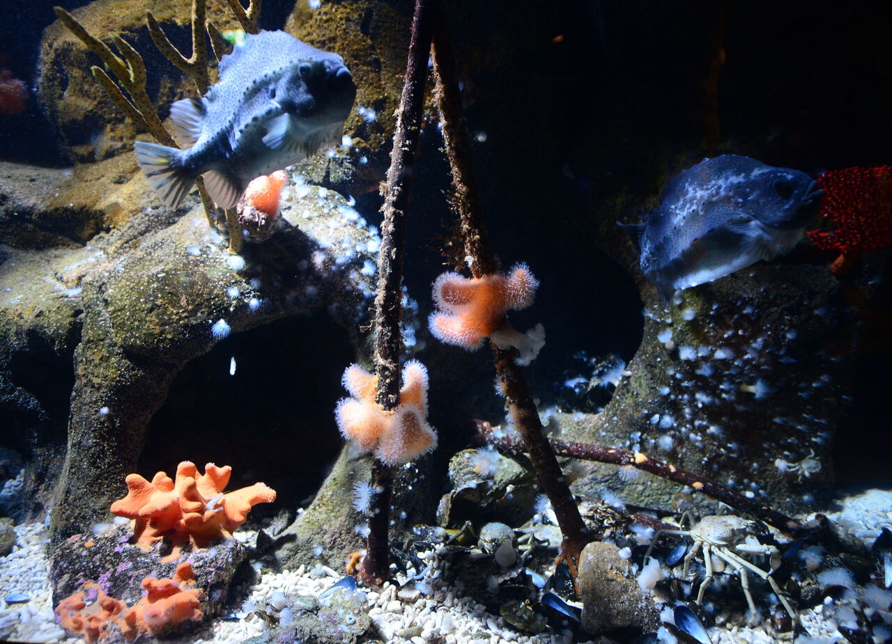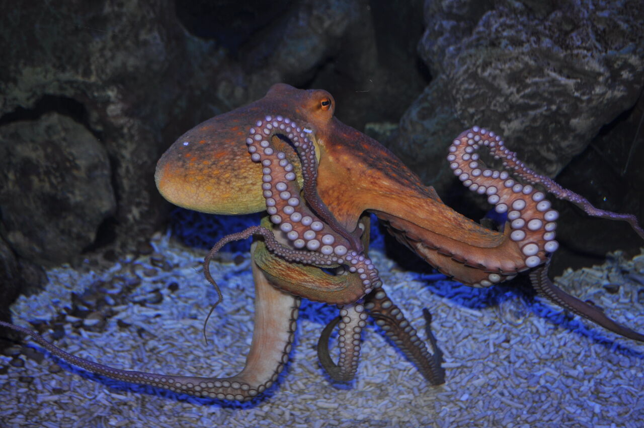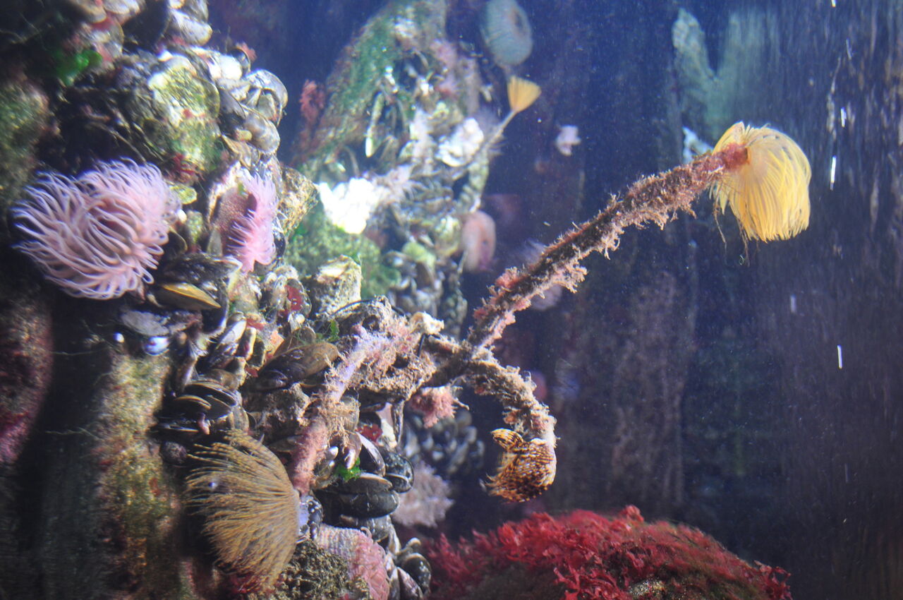 Als weitere Anzeichen, dass es auch in der Nordsee immer wärmer wird, sind in Aquarium 7 die Seenadeln (Syngnathus acus) und Schlangennadeln (Entelurus aequoreus) und in Aquarium 8 der Gewöhnliche Krake (Octopus vulgaris) zu sehen. Diese Arten sind auch immer häufiger in der Nordsee anzutreffen.