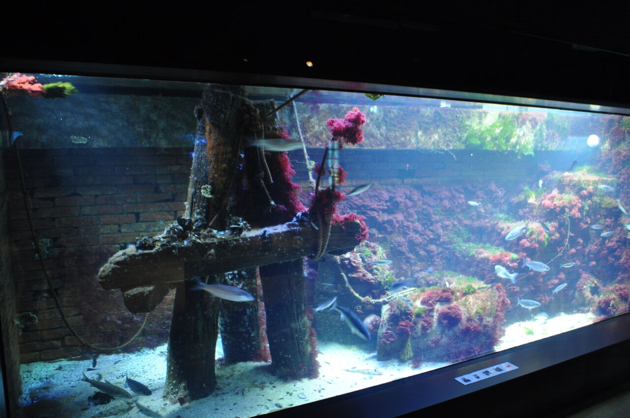 Aquarium 3 stellt eine alte Hafenmole zur Blütezeit der Segelschiffe dar. In diesem Aquarium sind verschiedene Plattfisch-Arten wie beispielsweise Scholle (Pleuronectes platessa), Seezunge (Solea solea), Rotzunge oder auch echte Limande (Pleuronectes microcephalus) genannt, Kliesche (Limanda limanda) vergesellschaftet mit gestreiften Leierfischen (Callionymus lyra), Aalmuttern (Zoarces viviparus). Im Freiwasser kreist ein SchwarmDreistachliger Stichlinge (Gasterosteus aculeatus). Die Essbaren Seeigel (Echinus esculentus) halten das Algenwachstum im Zaum und Strandkrabben (Carcinus maenas) vertilgen die Futterreste.