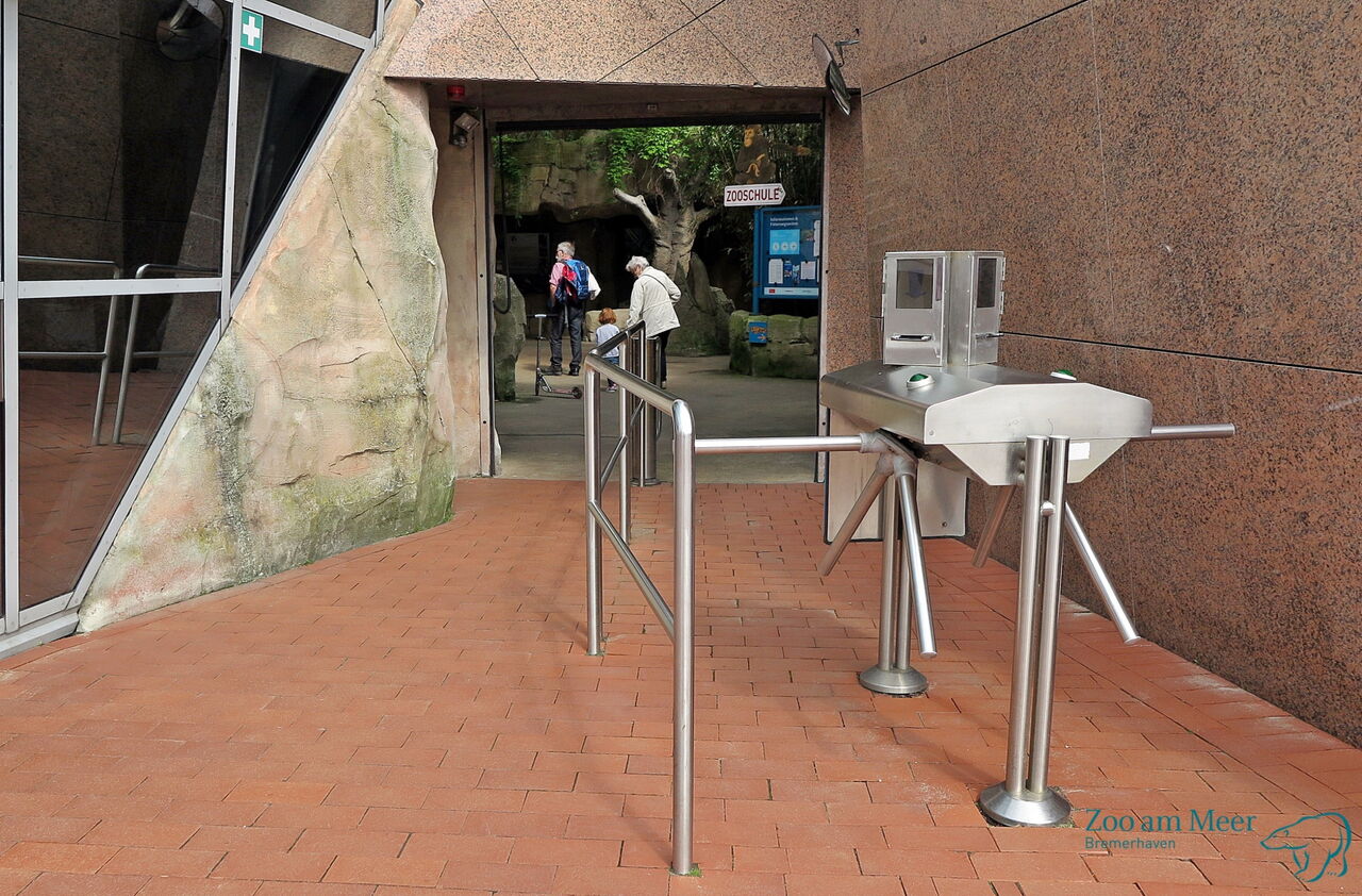 Ausgang: Sehr breites Drehkreuz, das mit einem Kinderwagen oder einem Rollstuhl mühelos passiert werden kann.