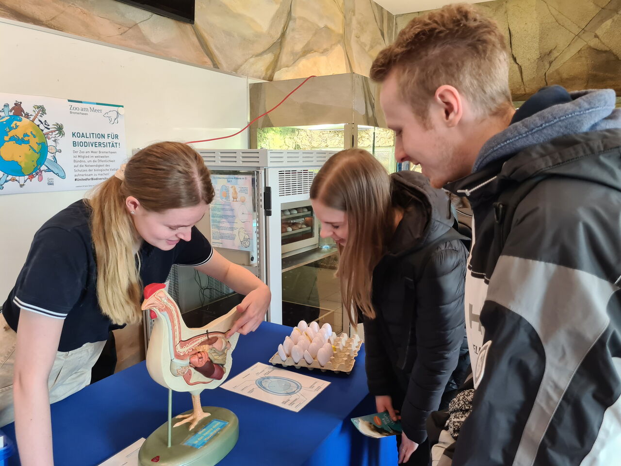 Niedliche Kaninchen sind ab Karfreitag bis Ostermontag auf unserer Osterwiese in den Räumlichkeiten der Zooschule zu bestaunen. Dort können Groß und Klein außerdem beobachten, wie kleine Küken aus dem Ei schlüpfen. Zudem wird alles Spannende rund ums Ei erklärt: Wie kommt das Ei in die Henne? Wie kommt das Ei aus der Henne? Wie wird es bebrütet? Wie entwickelt sich das Küken im Ei?