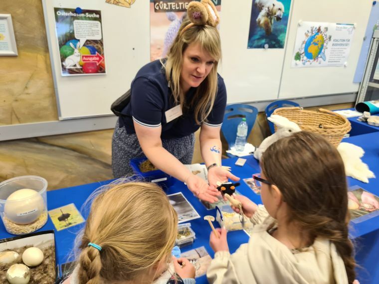 Von Karfreitag bis Ostermontag können die Besuchenden niedliche Kaninchen auf einer Osterwiese in der Zooschule bestaunen. Mit etwas Glück können die Besuchenden sogar live dabei sein, wenn ein kleines Küken aus dem Ei schlüpft. Mitarbeitende der Zooschule erklären alles Spannende rund ums Ei: Wie kommt das Ei in die Henne? Wie kommt das Ei aus der Henne? Wie wird es bebrütet? Wie entwickelt sich das Küken im Ei?