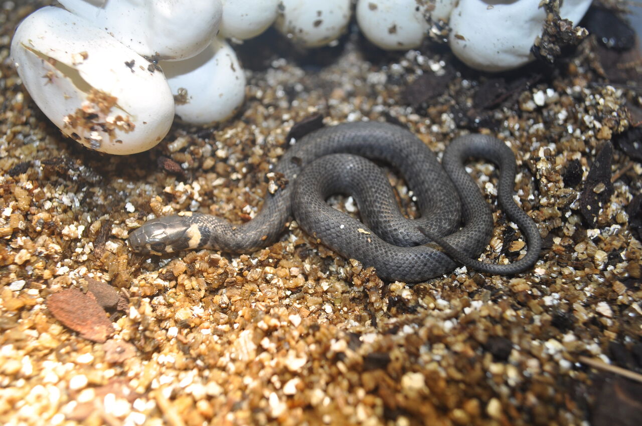 • Frisch geschlüpfter Nachwuchs bei den Ringelnattern