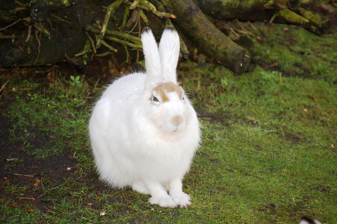 • Ein weißer Schneehase auf der Anlage