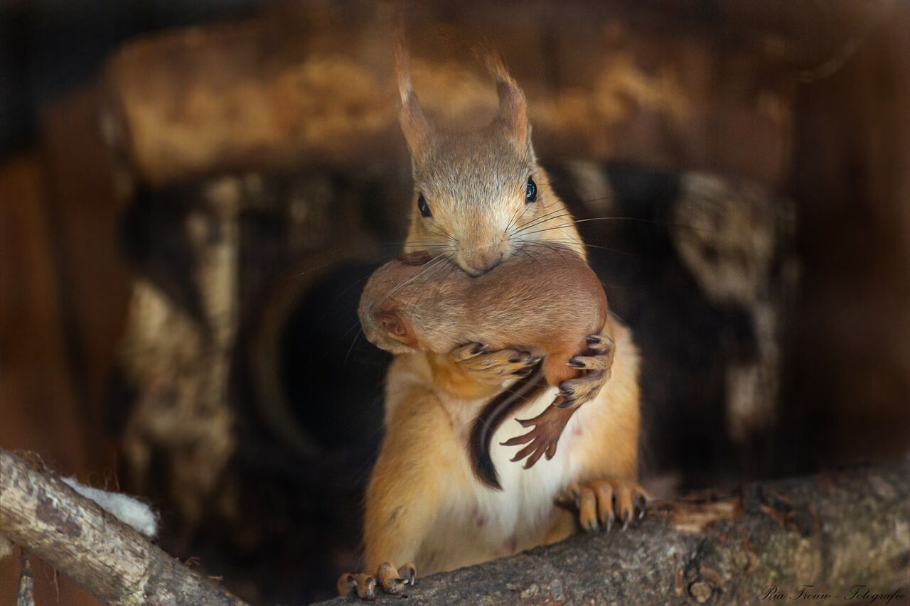 • Sibirisches Eichhörnchen mit Nachwuchs