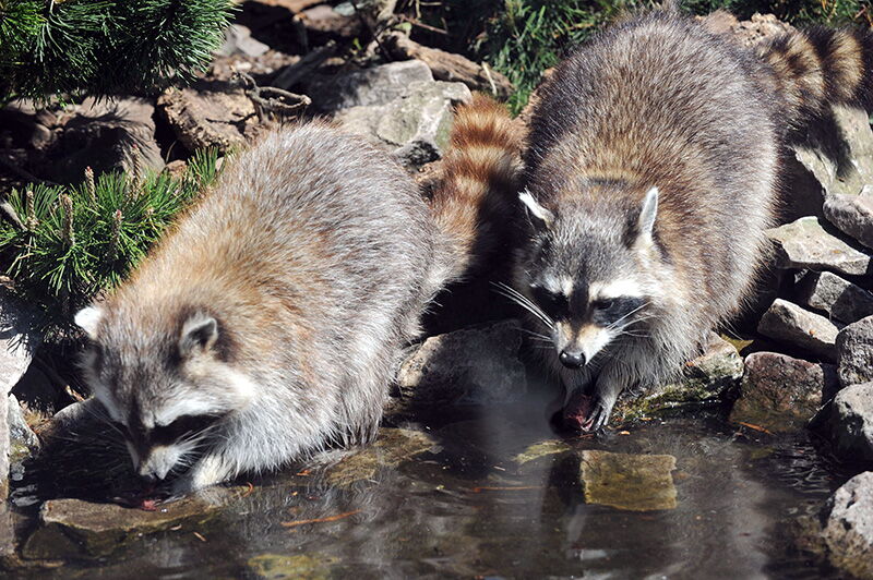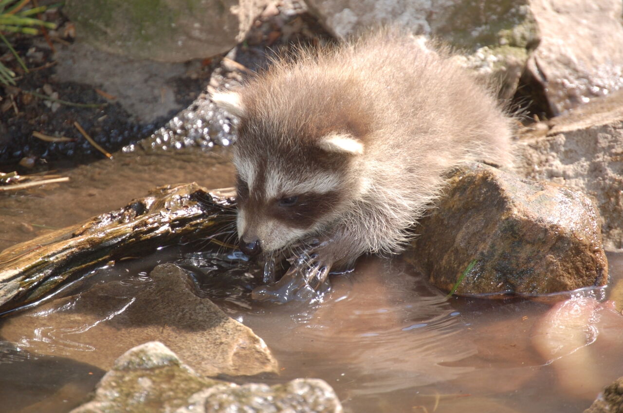 • Waschbären-Nachwuchs planscht im Wasser