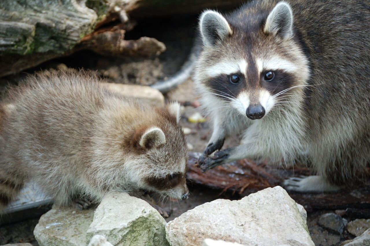 • Waschbär mit Nachwuchs