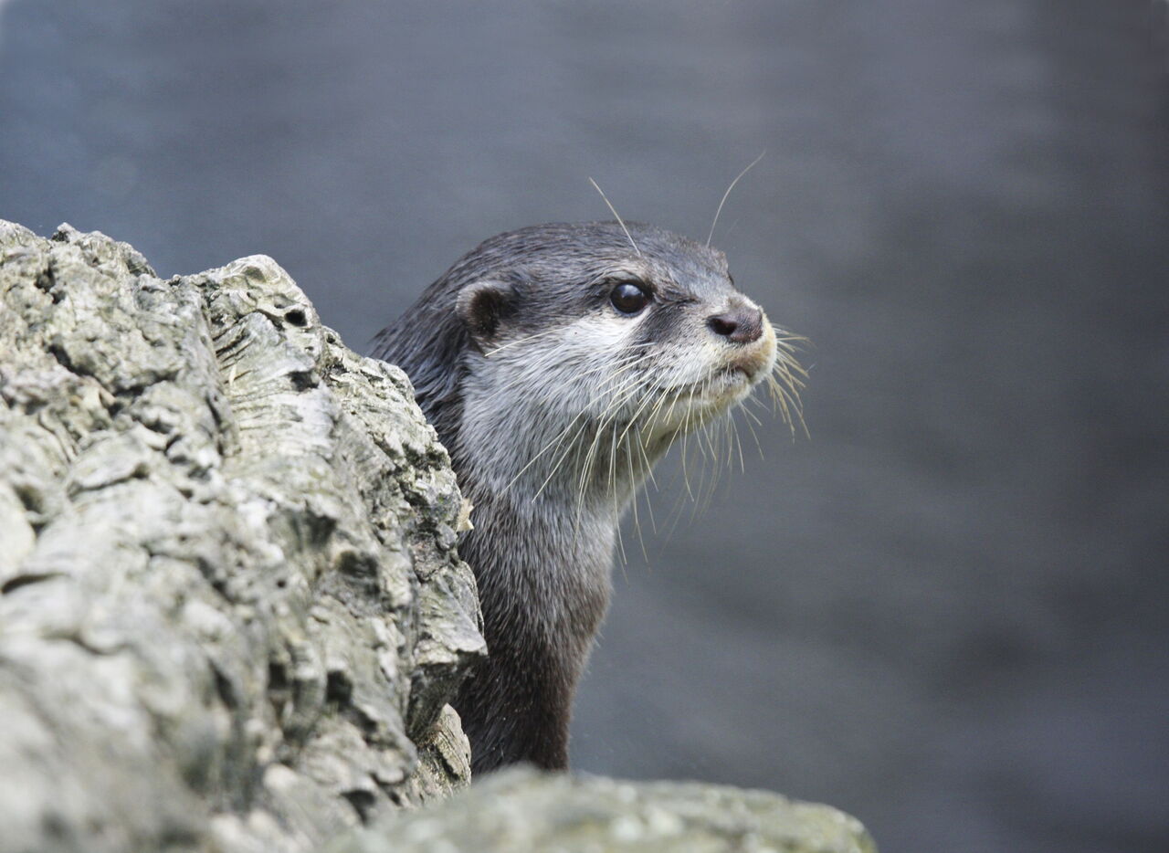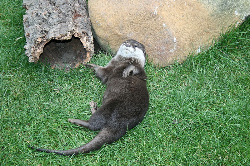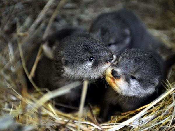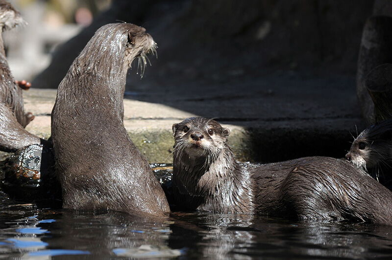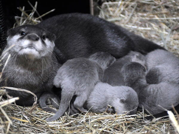 • Zwergotter-Mutter mit ihrem Nachwuchs