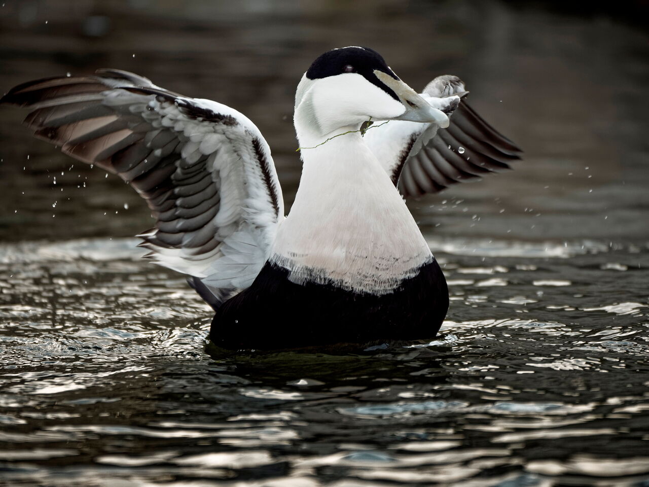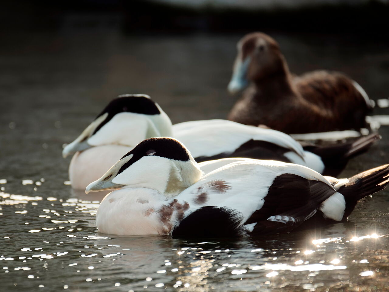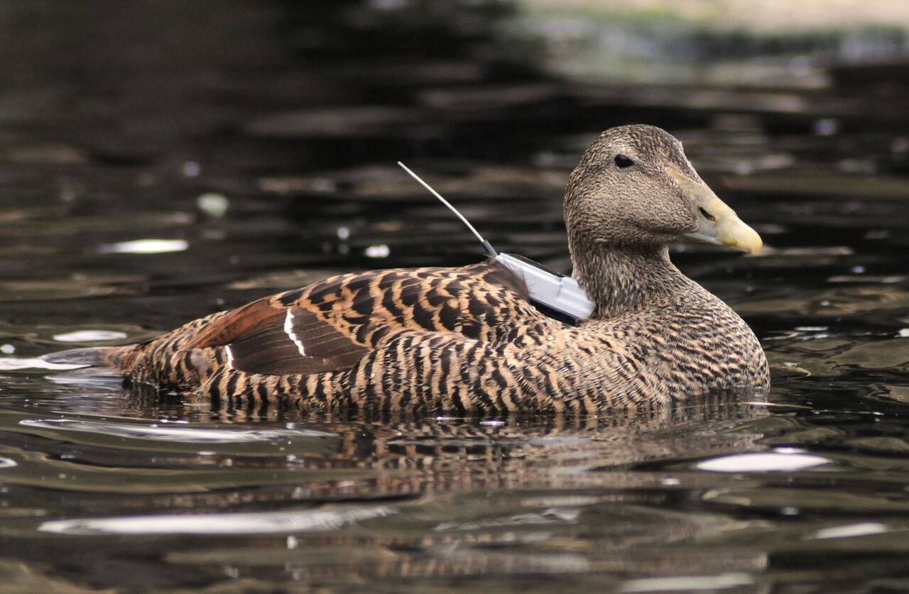 April bis Mai eine Brut mit bis zu 7 Eiern, Brutzeit 24–26 Tage, Nest wird beim Verlassen als Schutz vor Räubern sorgfältig abgedeckt; Polarfüchsen macht sie eine mögliche Beute wenig schmackhaft, indem sie flüssigen Kot über das Nest spritzt.