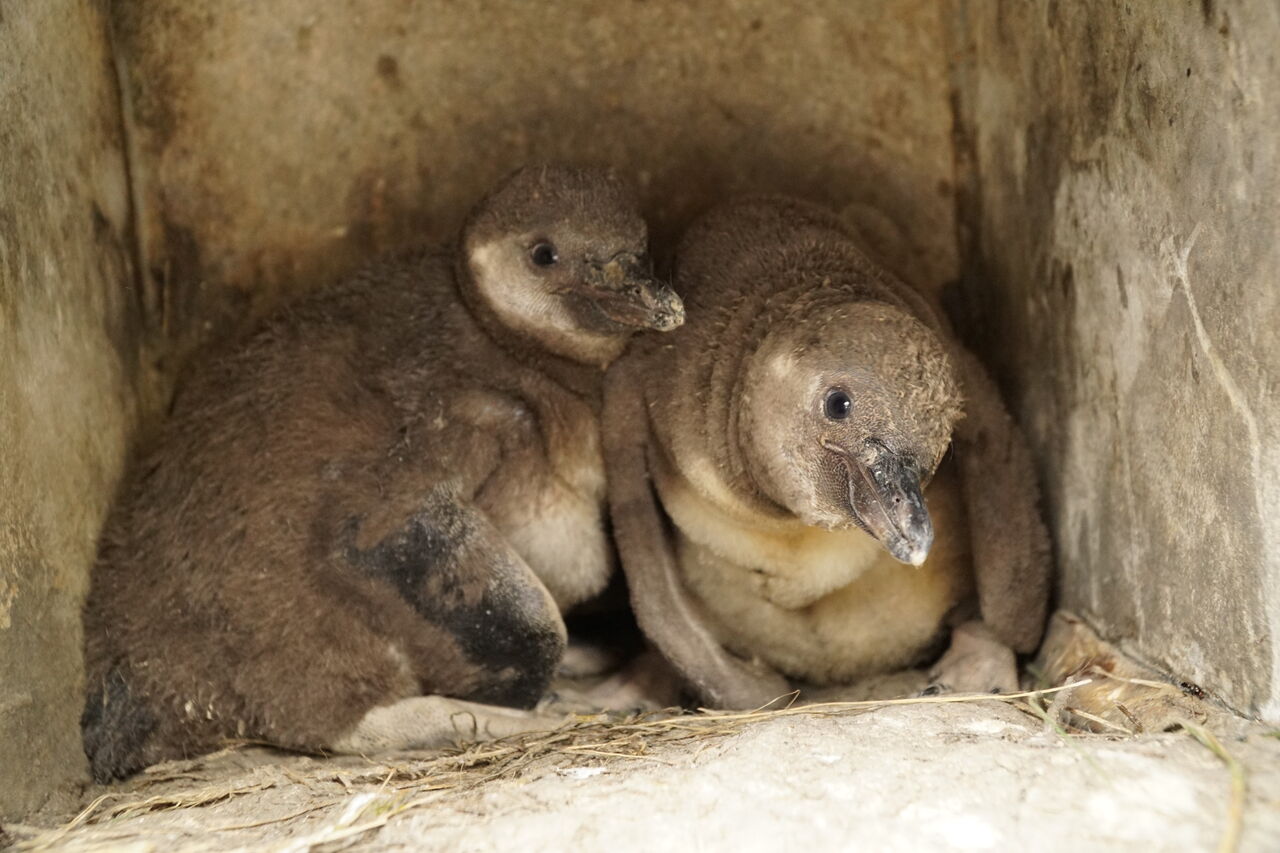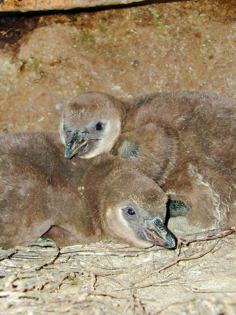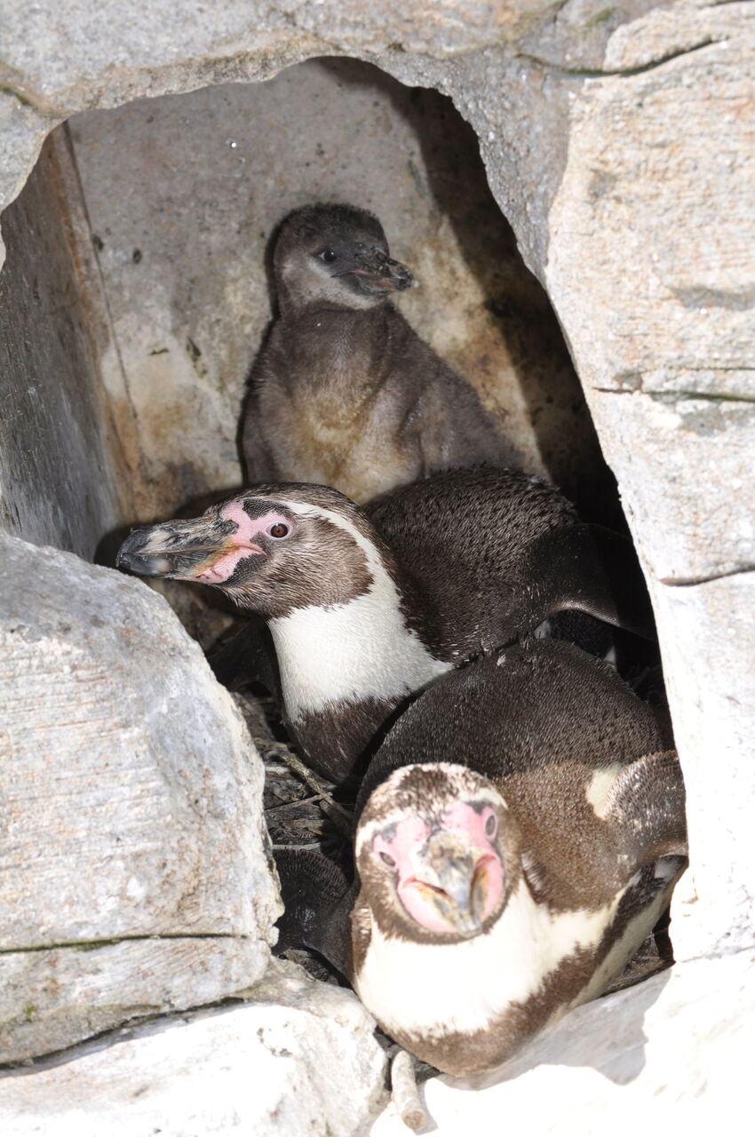 • Nachwuchs bei den Humboldt-Pinguinen: Zwei Pinguine halten sich in ihrer Höhle auf