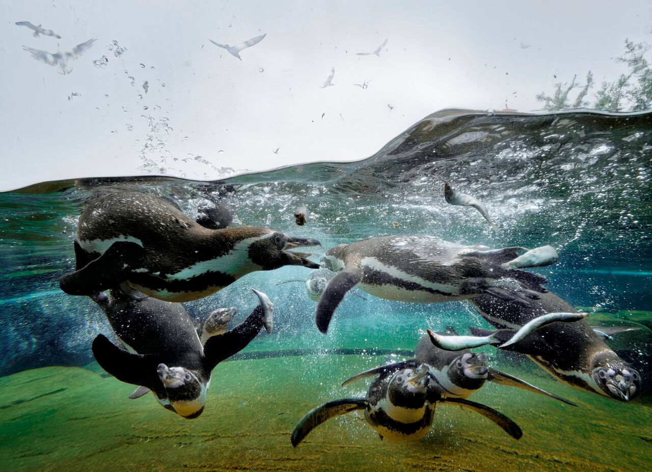 • Humboldt-Pinguine tauchen nach Fisch