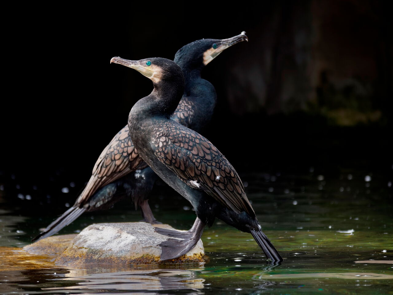 Nester aus Tang und Treibgut auf Klippen oder aus Reisig auf Bäumen , 3–4 hellblaue Eier, Brutzeit 25 Tage, nach 3 Monaten selbstständig, erst im 4. Lebensjahr fortpflanzungsfähig